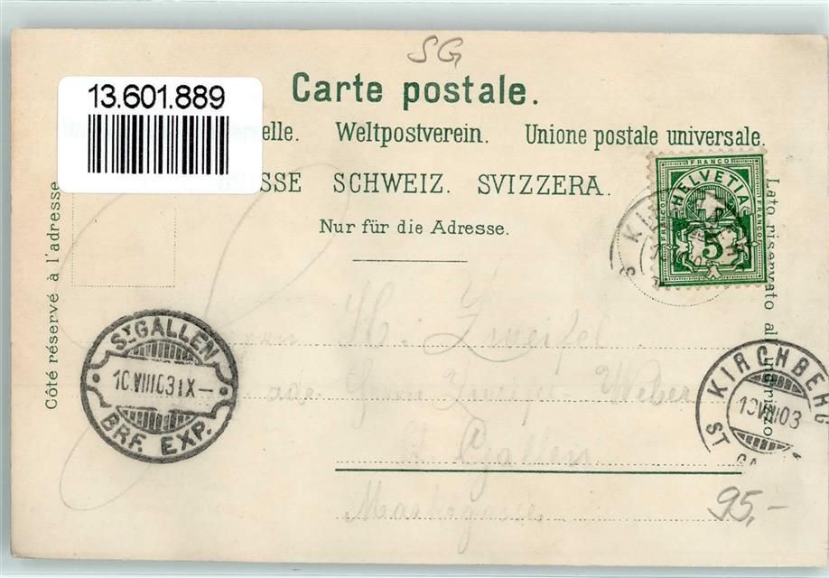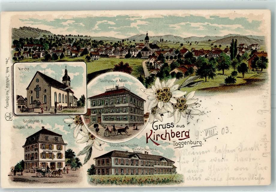 Kirchberg SG, Kirche Gasthaus Zum Adler Gasthaus Zum Wilhelm Tell Ostschweizerische Strickfachschule Edelweiss Lithographie