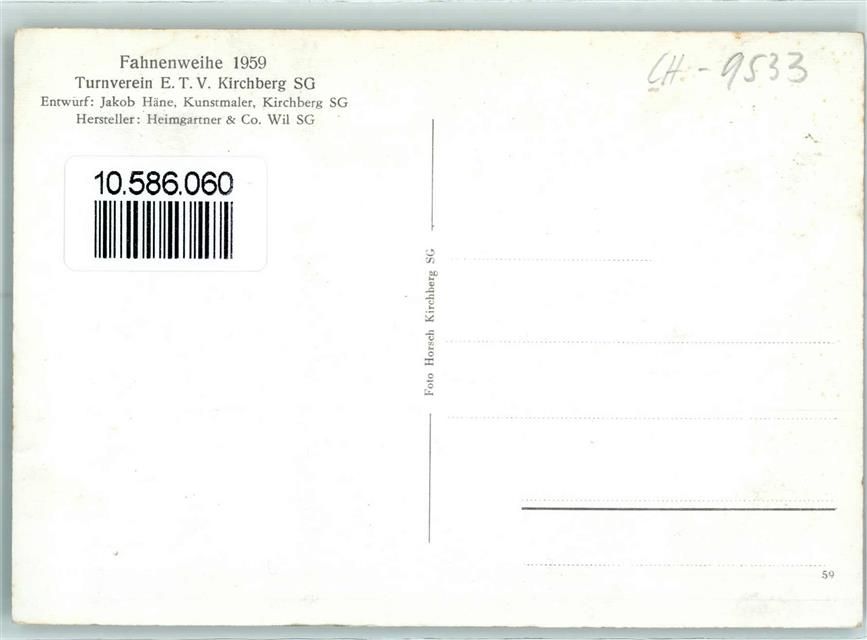 9533 Kirchberg SG Foto AK Fahnenweihe 1959 Turnverein E.T.V.