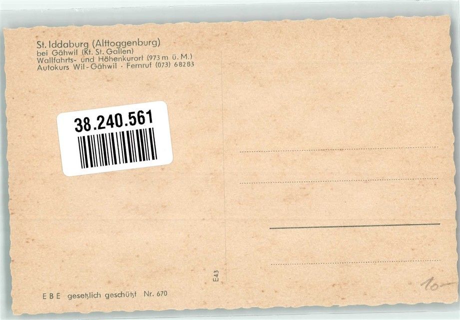 9534 Gähwil Foto AK Kirche Schwalbe St. Iddaburg