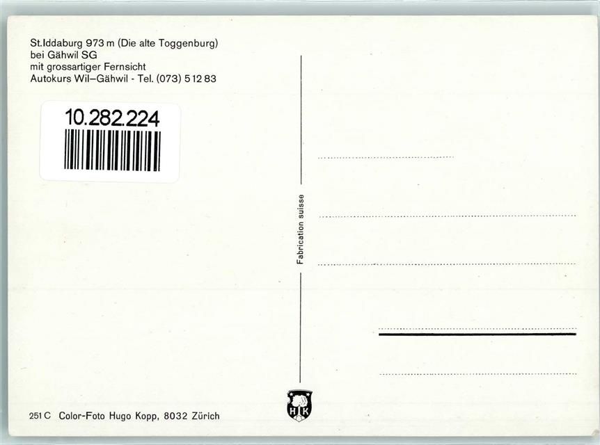 9534 Iddaburg - St. Iddaburg bei Gähwil SG mit grossartiger Fernsicht Autokurs Wil-Gähwil