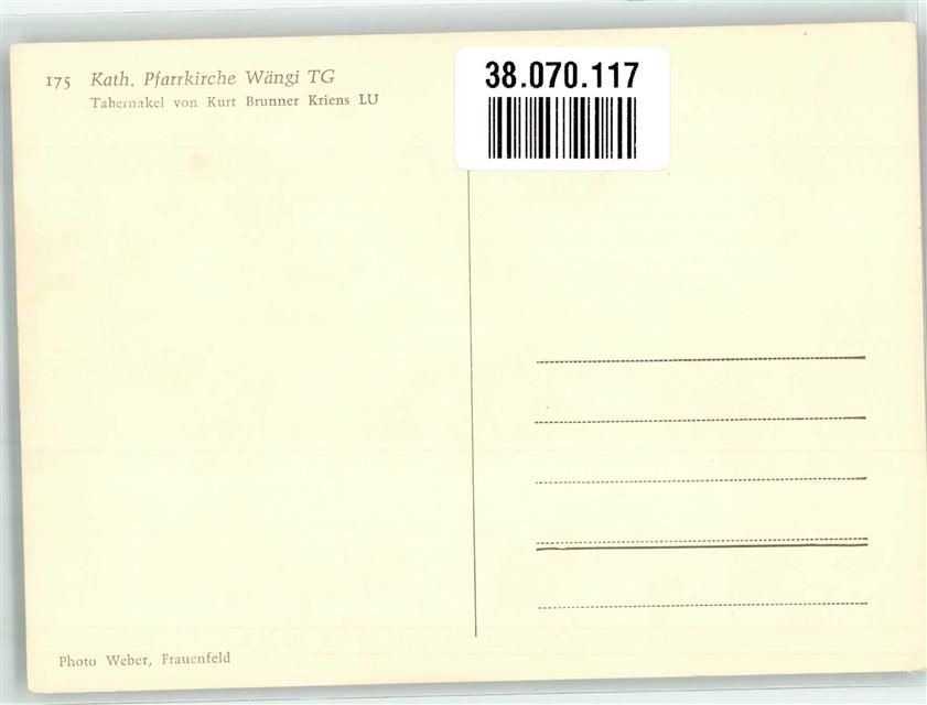9545 Wängi Foto AK Kath. Kirche Tabernakel