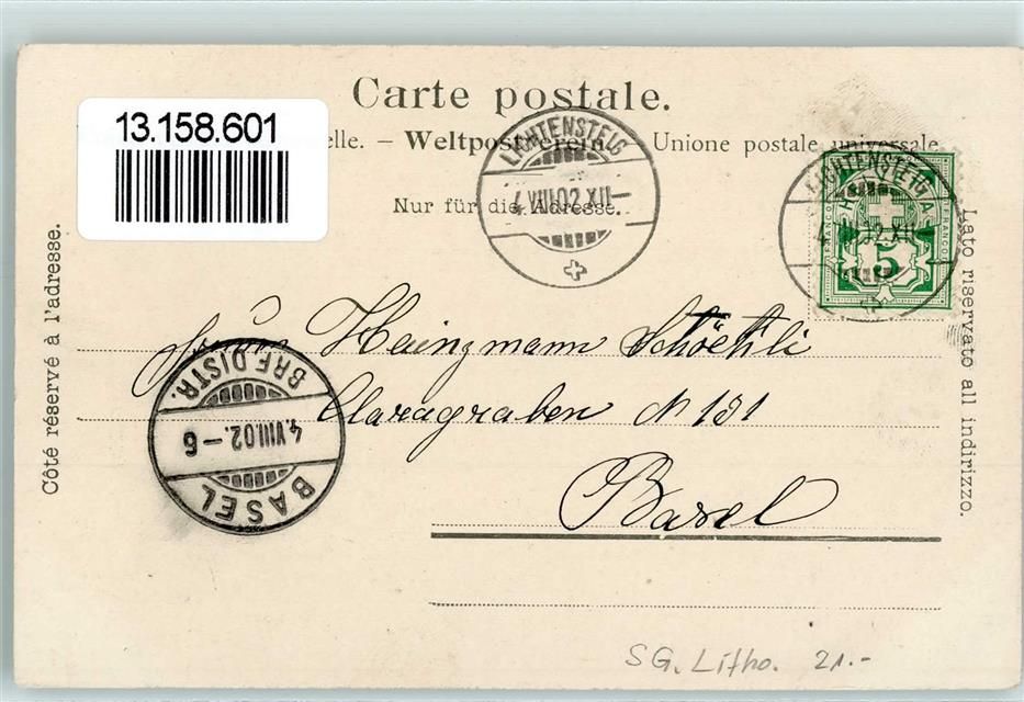 9620 Lichtensteig 1902 Gebrauchsspuren Obertor 1830 Sonnabend Lithographie