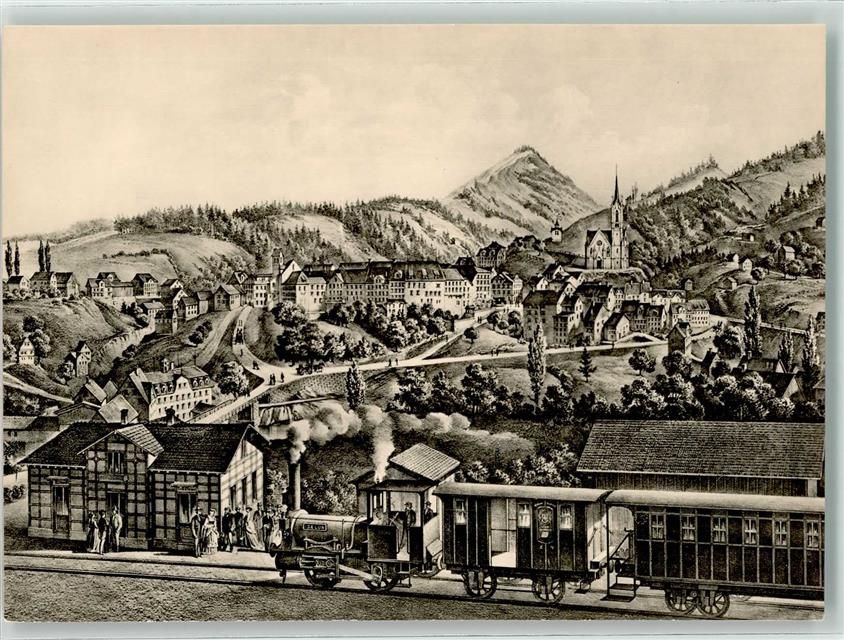 9620 Lichtensteig Künstlerkarte Eisenbahn Dampflok Lichtensteig sign. T. Grob