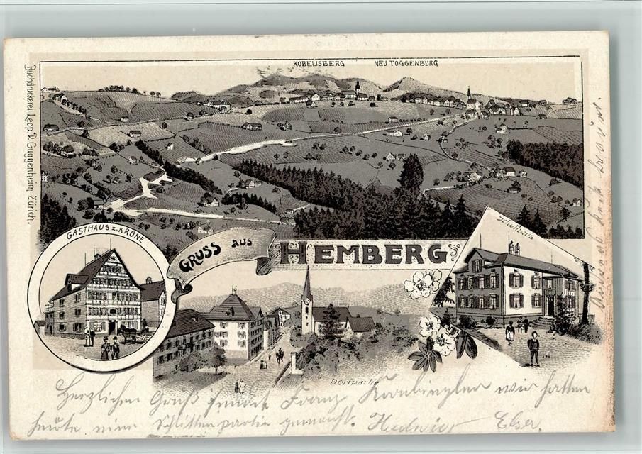 9633 Hemberg 1908 BOAKC Gasthaus Krone Lithographie