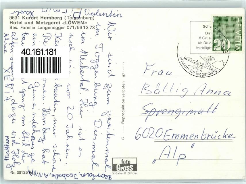 9633 Hemberg - Hotel Metzgerei Löwen Brunnen