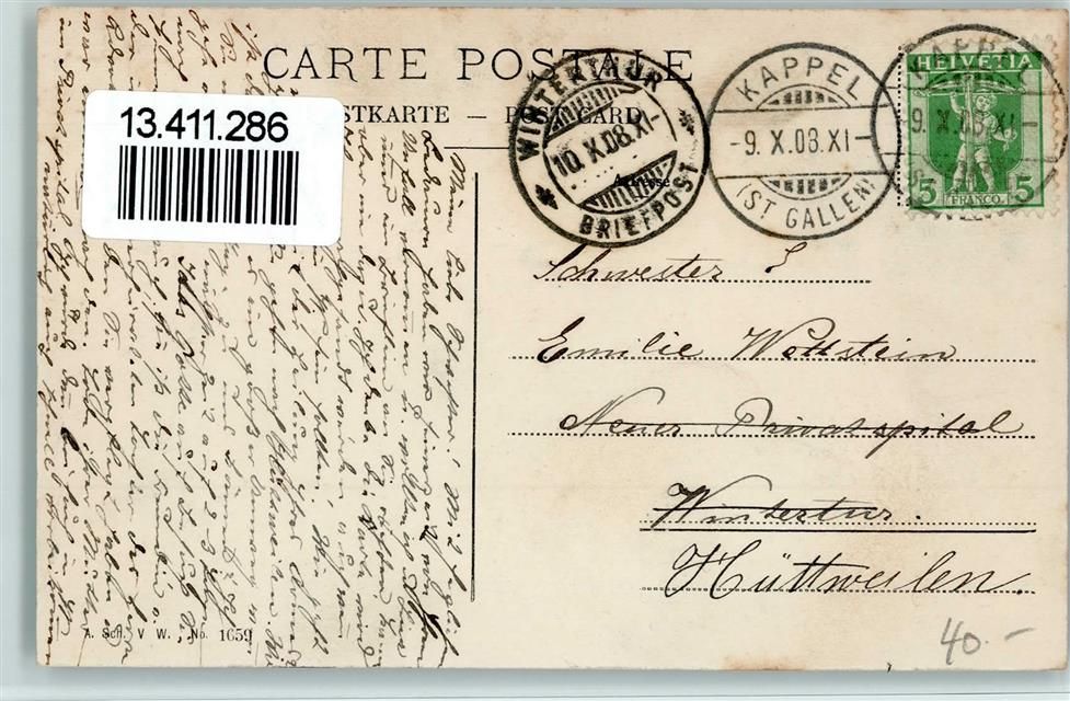9642 Ebnat-Kappel 1908 - Dorfpartie mit Postgebäude