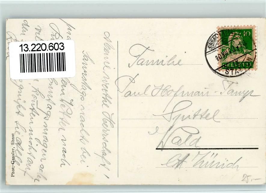 Ebnat-Kappel, Wirtschaft und Pension Zum Speer Bes. J. Wälti Ort lt. Stempel