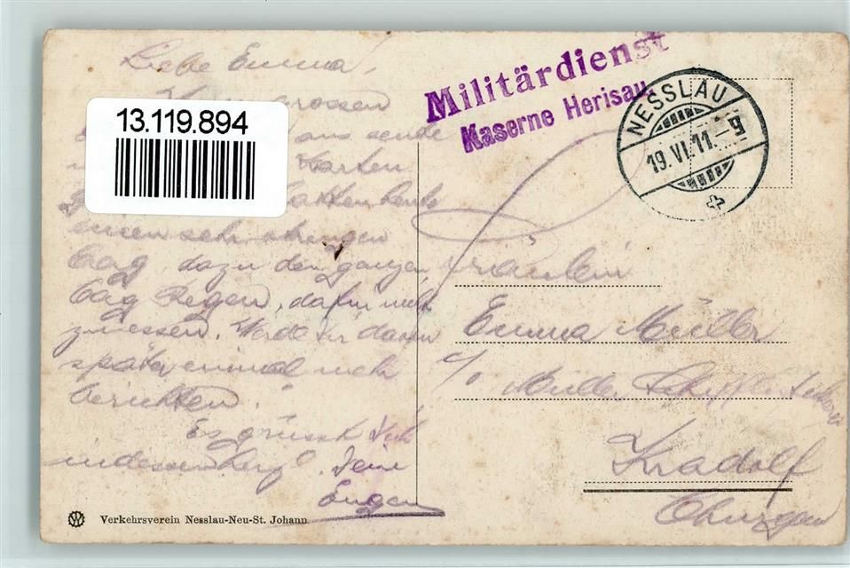 9650 Dicken Nesslau Gebrauchsspuren 1911 Stempel Militärdienst Kaserne Herisau