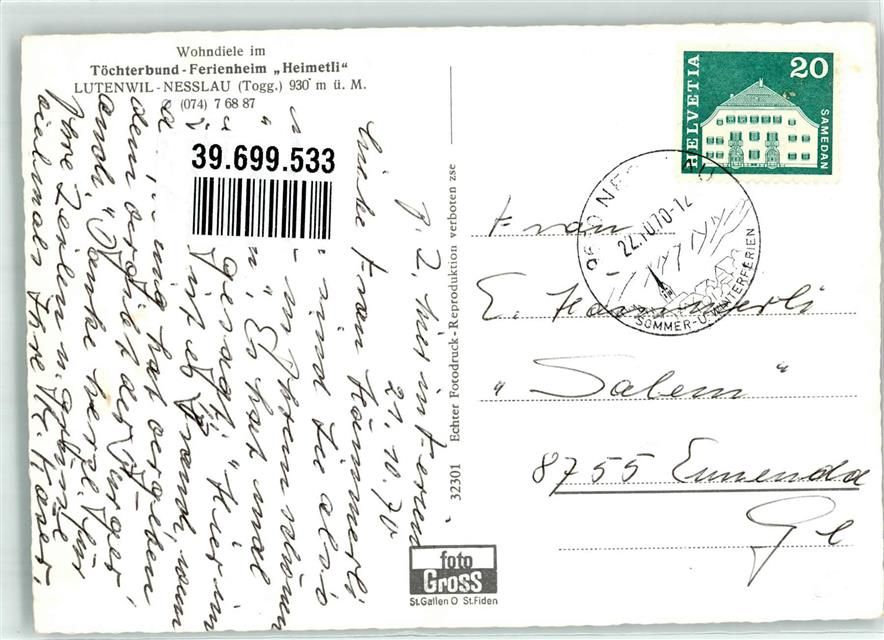 9650 Nesslau Foto AK Töchterbund Ferienheim Heimetli Lutenwil Foto Gross Wohndiele