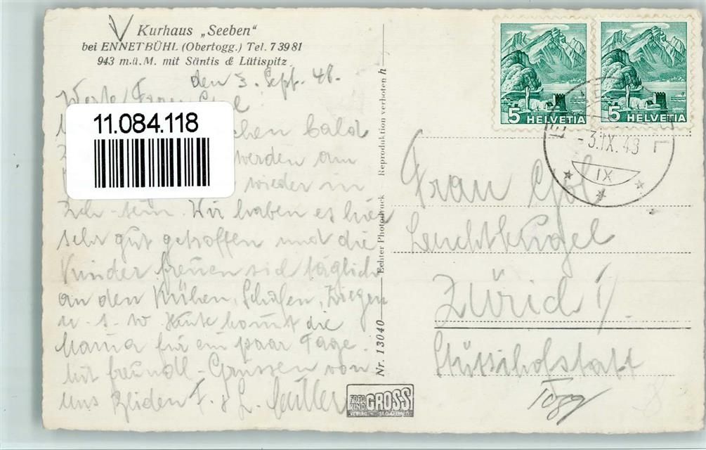 9651 Ennetbühl - Kurhaus Seeben bei Ennetbühl mit Säntis und Lütispitz