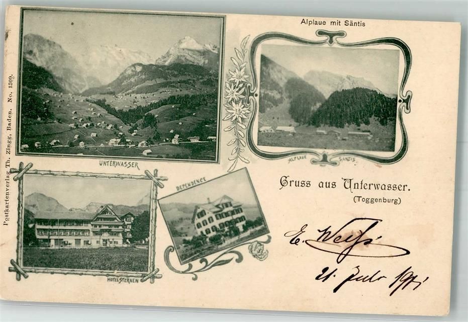 9657 Unterwasser 1901 Foto AK Hotel Sternen