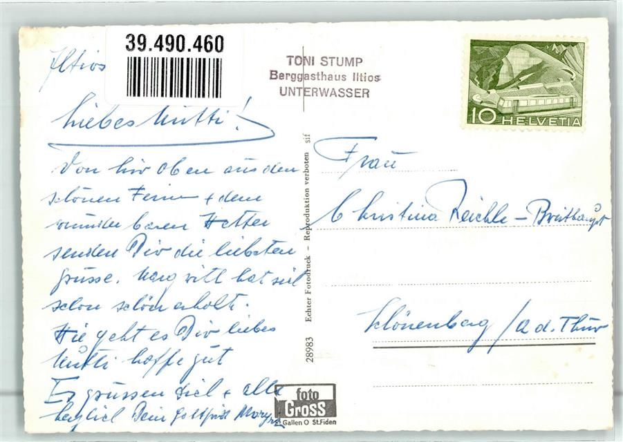 9657 Unterwasser - Gasthaus Iltios Säntis Schafberg Stöfeli Hüttenstempel