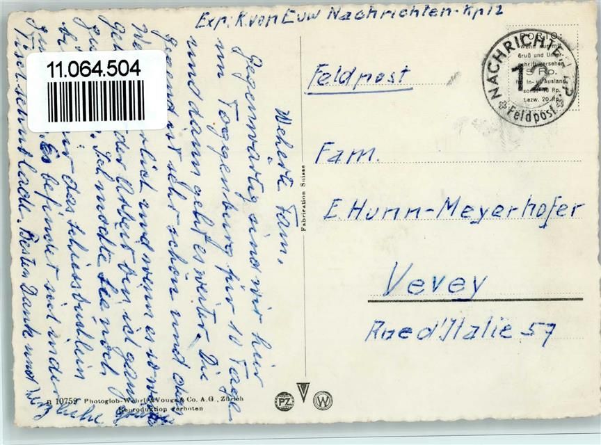 Unterwasser, Gräppelensee Toggenburg Feldpost