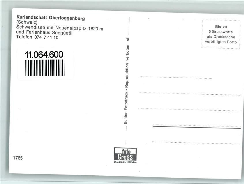 9657 Unterwasser - Kurlandschaft Obertoggenburg Schwendisee mit Neuenalpspitz und Ferienhaus Seegüetli