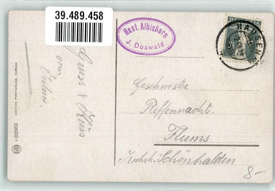 Albishorn 1919 - Hüttenstempel Gasthaus