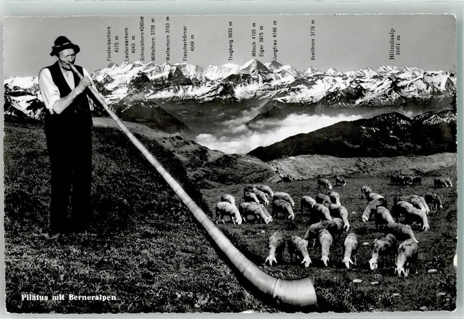 Alphornbläser in der Schweiz AK Alphorn Fotomontage AK
