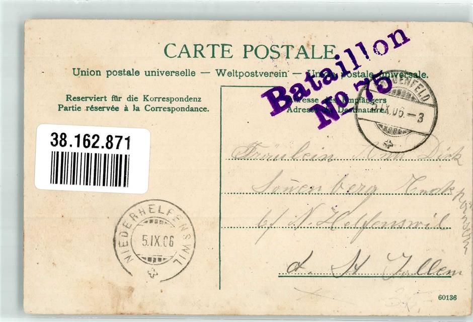 Angetretene Soldaten in Uniform Edition Guggenheim & Co. No. 10983 Feldpost Bataillon No. 75 Militär Schweiz 1906