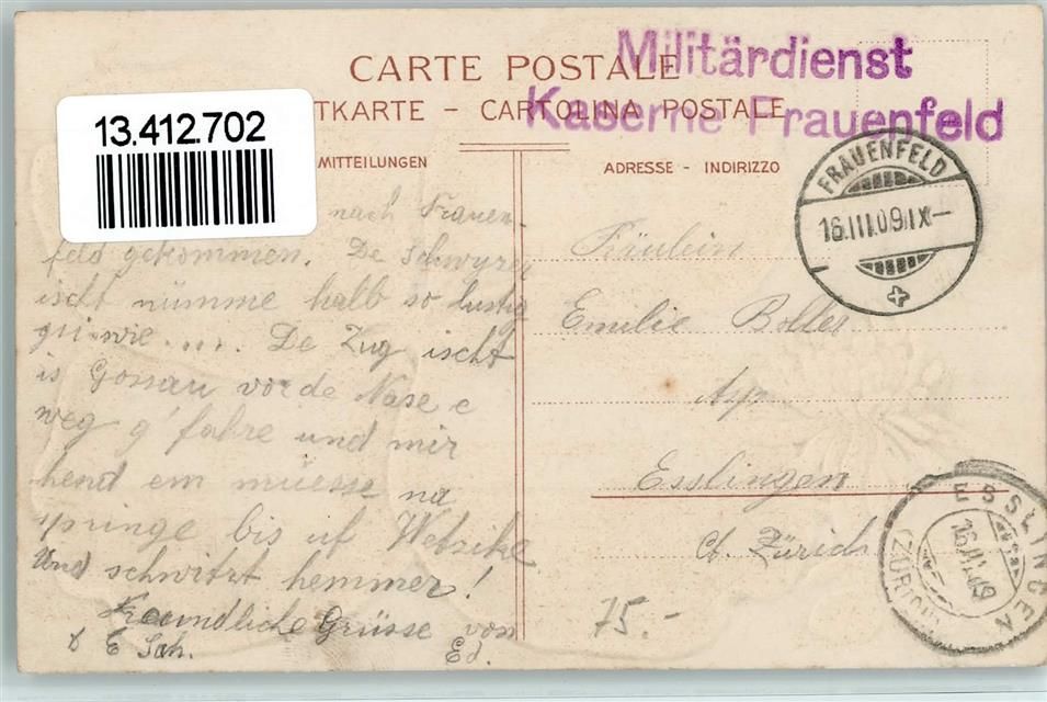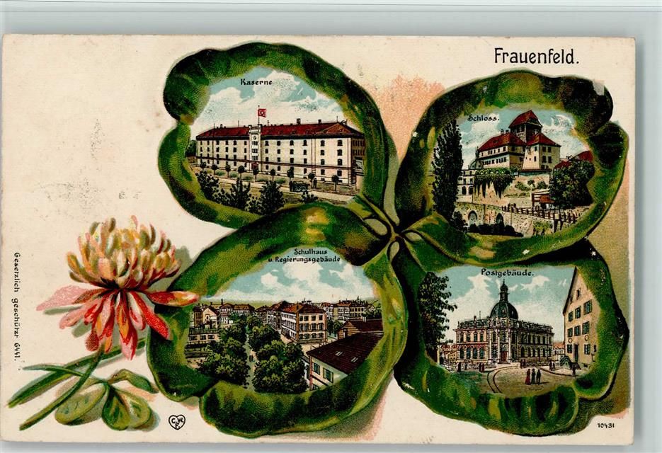 Frauenfeld, Passepartout Vierblättriger Klee Kaserne Schloss Schulhaus Regierungsgebäude Postgebäude Stempel Militärdienst