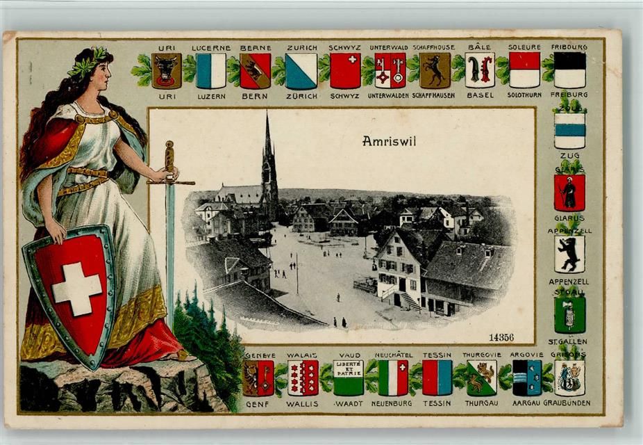 Amriswil, Lithographie / Prägedruck Helvetia Wappen