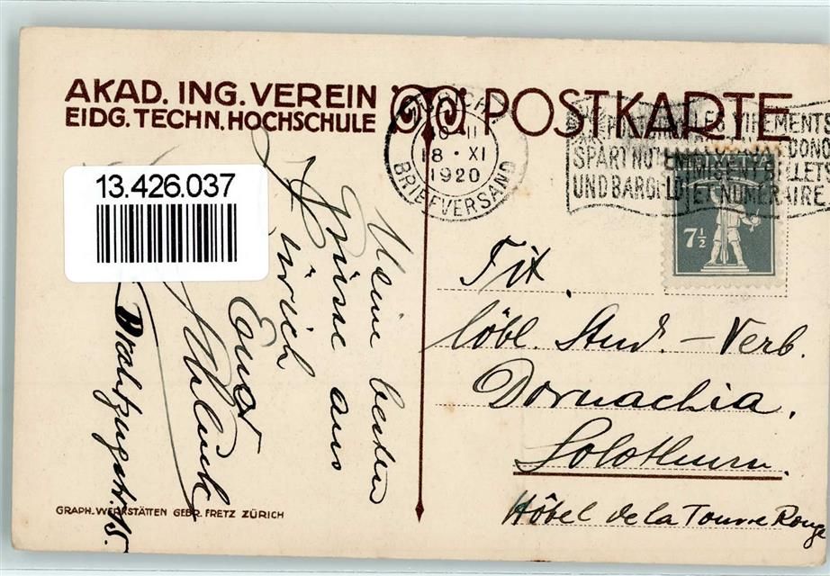 Zürich, Akad. Ing. Verein Eidg. Techn. Hochschule sign K. Kobelt