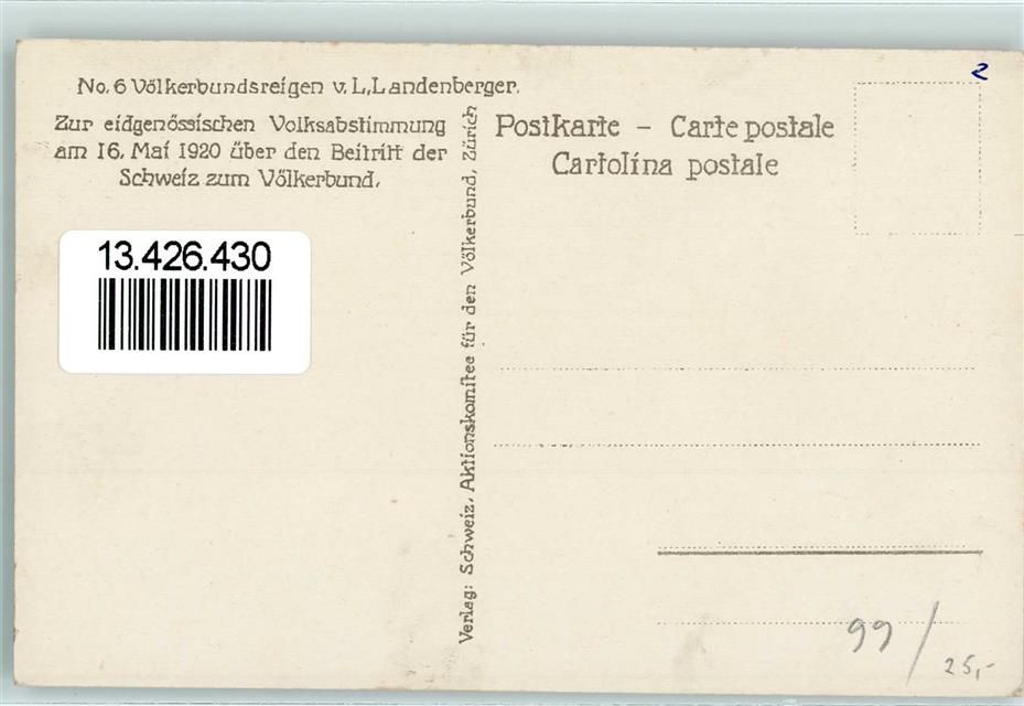 , Vivat Völkerbundsreigen sign L. Landenberger Eidgen. Volksabstimmung zum Völkerbund