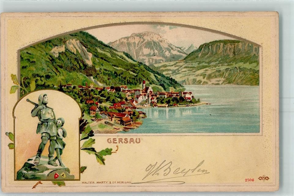 Gersau, Tell-Denkmal Passepartout Lithographie