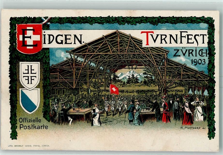 Zürich, Eidgen. Turnfest Festhalle sign K. Mossdorf Wappen