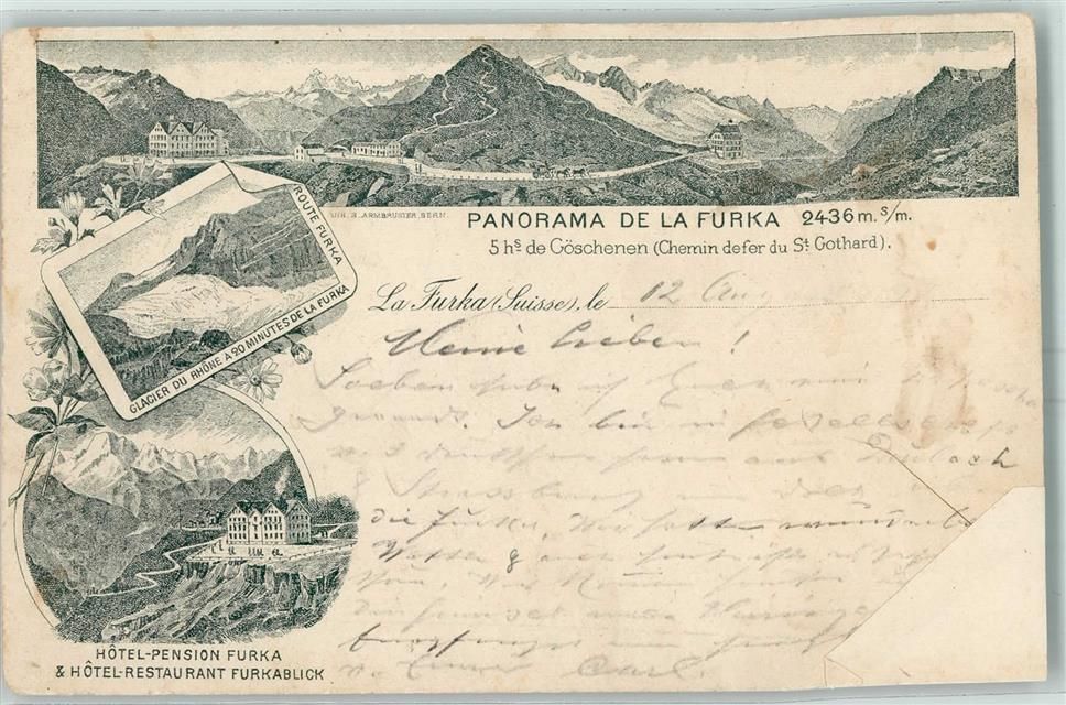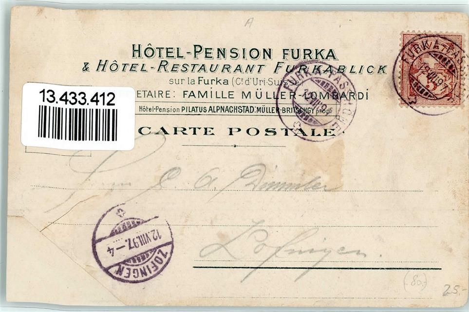 Furka, Vorläufer Druck 1890 - 1895 Gletscher, Hotel Lithographie