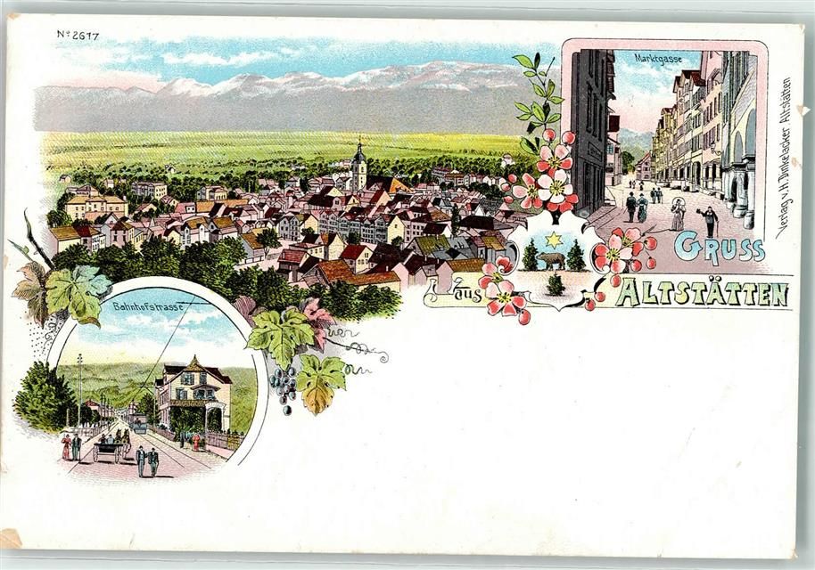 Altstätten SG, Bahnhofstraße Marktgasse Lithographie