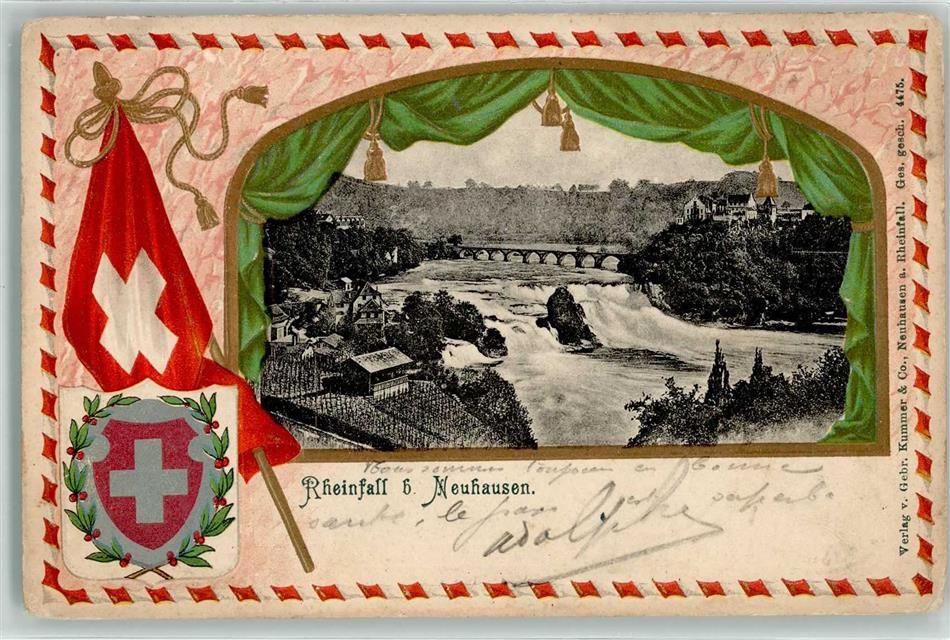 Neuhausen am Rheinfall, Rheinfall Brücke Wappen Fahne Lorbeerkranz Vorhang Quaste