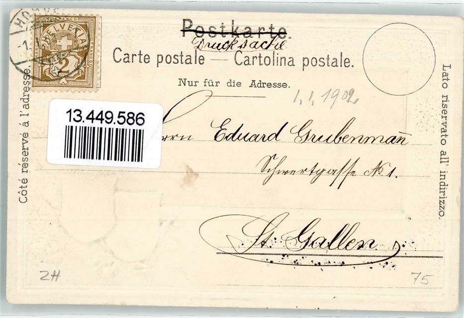 Horgen, Wappen Blätter Schwan Pfeil Herzlichen Glückwunsch zum neuen Jahre Kirche