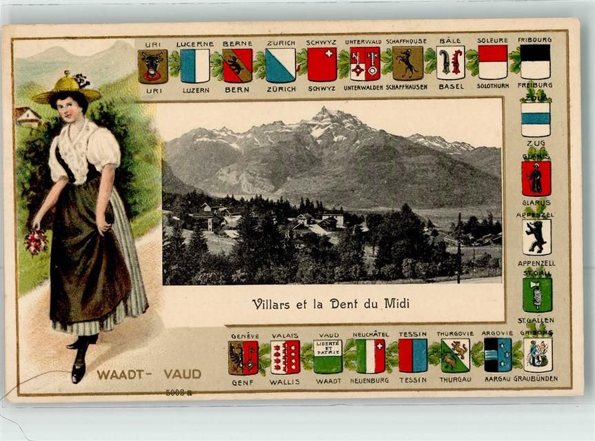 Villars-sur-Ollon, Dent du Midi Tracht Wappen Lithographie