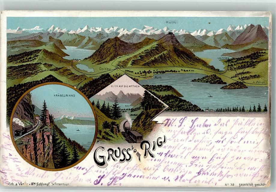 Rigi Kulm, Kräbelwand Mythen Kulm Bergbahn Verlag Schlumpf Nr 39 Feldpost Landsturmkaompagnie I/76