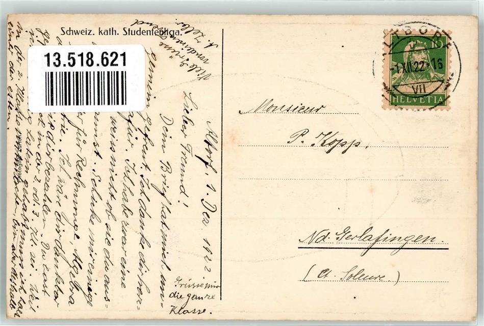 Altdorf SH, Studentika Schweiz. kath. Studentenliga Ort lt. Stempel