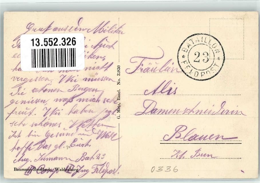 Waldenburg, Geschäft Straße Feldpost Bataillon 23