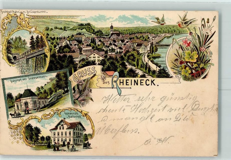 Rheineck, Drahtseilbahn mit Brückentunnel Bahnhof der Drahtseilbahn Restaurant Bahnhof