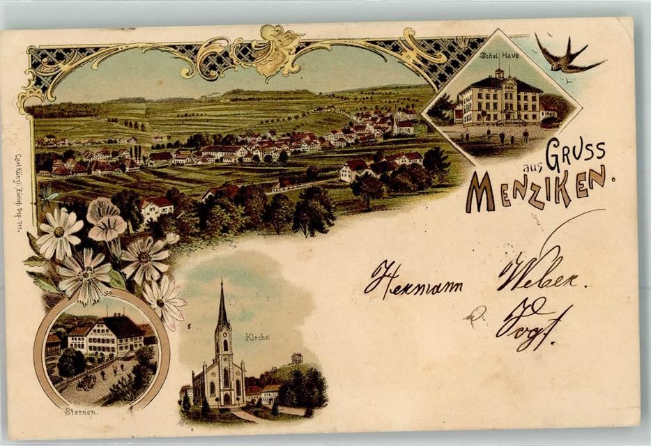 Menziken, Schulhaus Gasthaus Sternen Kirche Verlag Künzli Nr 711