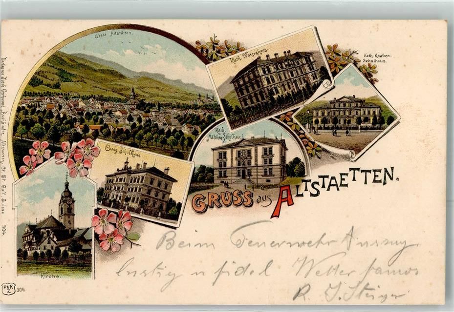 Altstätten SG, Kirche Evangel. Schulhaus Kath. Mädchen-Schulhaus Kath. Waisenhaus Kath. Knaben-Schulhaus