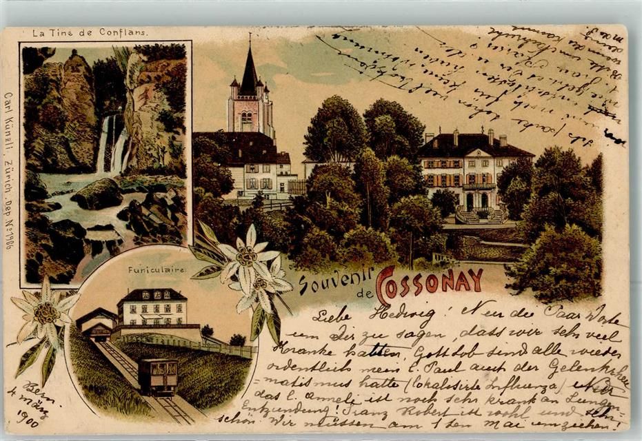 Cossonay-Ville, La Tine de Conflans Wasserfall Funiculaire Bergbahn Verlag Künzli Nr 1986