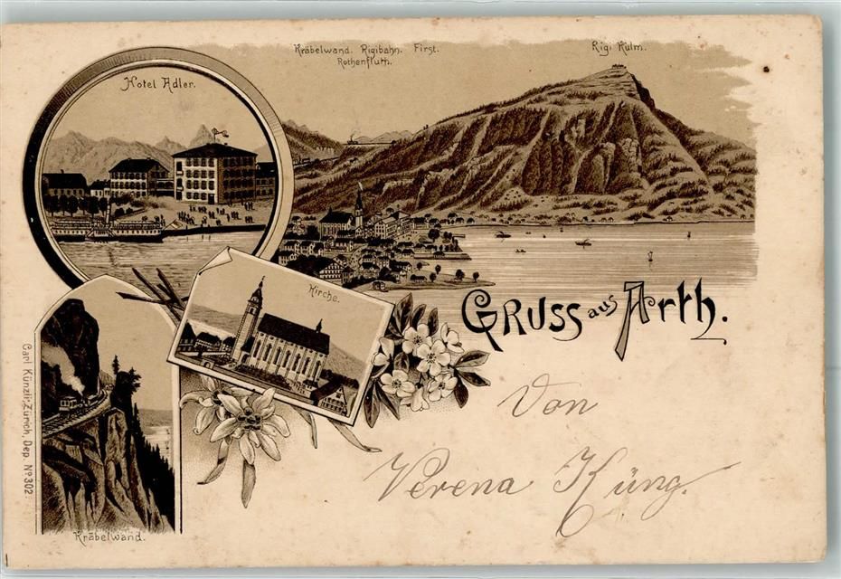 Arth, Hotel Adler Knäbelwand Kirche Rigibahn First Rothenfluth Rigi Kulm Verlag Künzli Nr 302