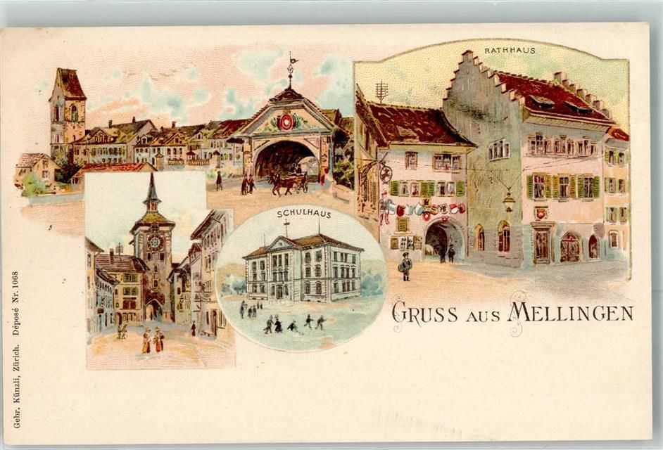 Mellingen, Rathaus Schulhaus Verlag Künzli Nr 1068