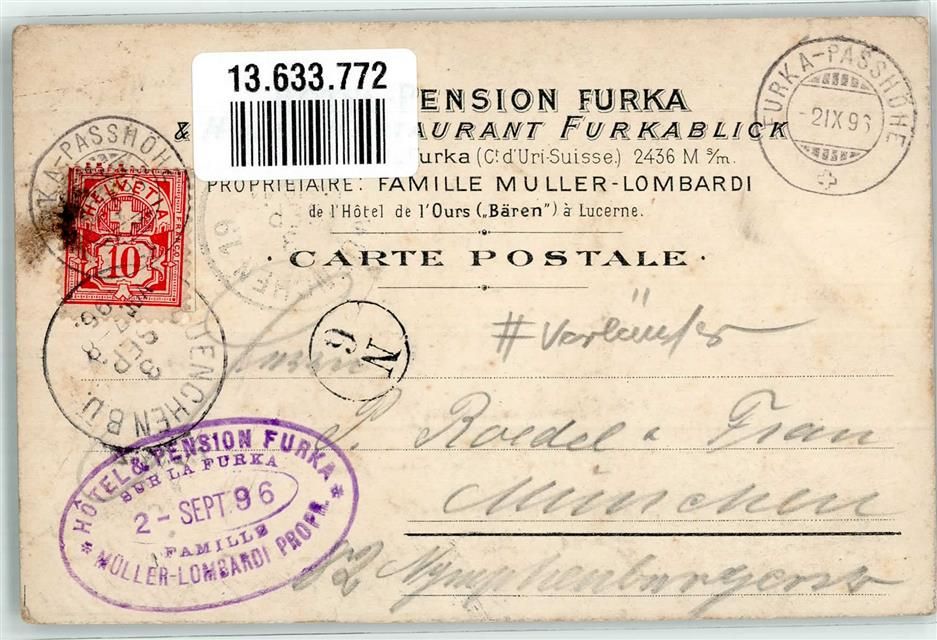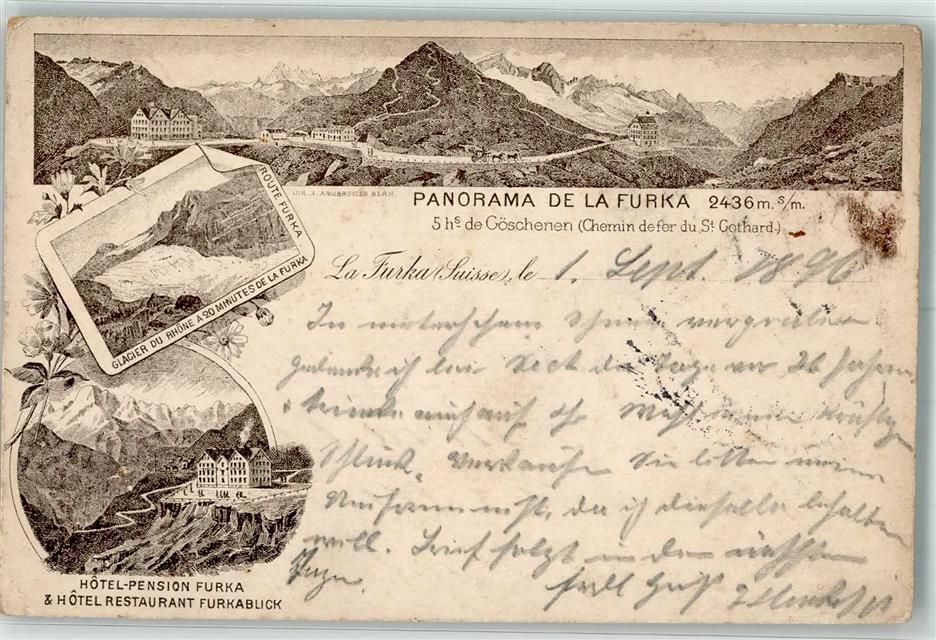 Furka, Hotel Pension Furkablick Lithographie Hüttenstempel Vorläufer