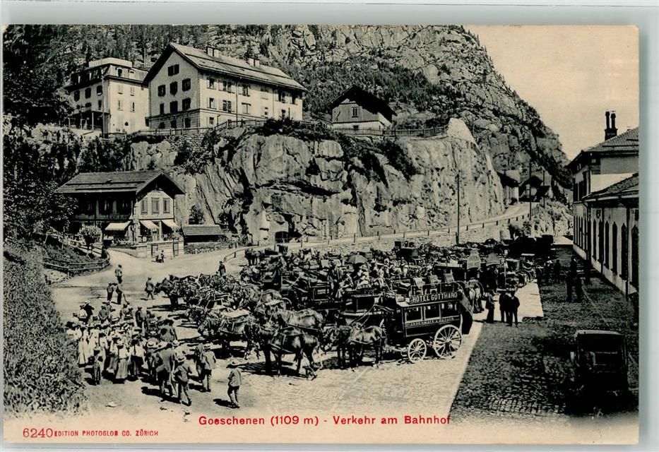 Göschenen, Verkehr am Bahnhof Kutschen Hotel Gotthard