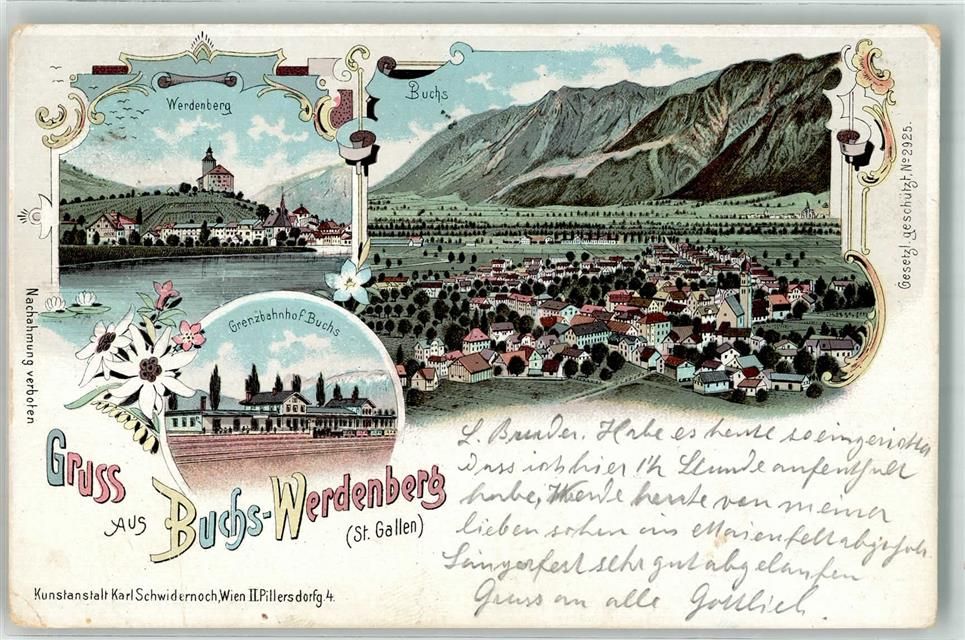Werdenberg, Buchs Grenzbahnhof Lithographie