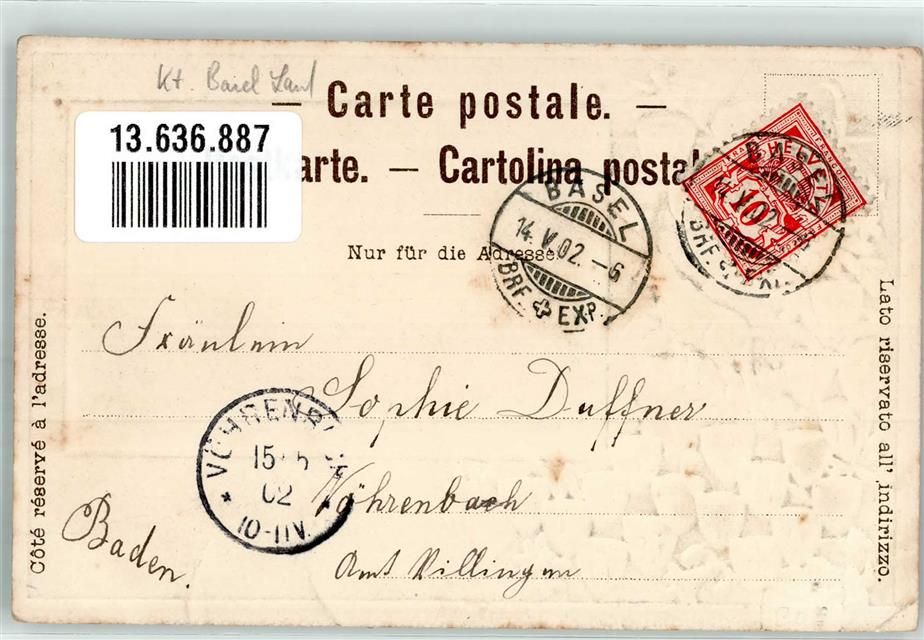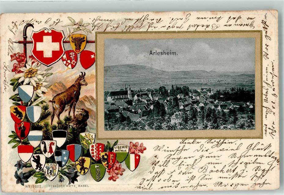 Arlesheim, Passepartout Gämse Wappen Lithographie
