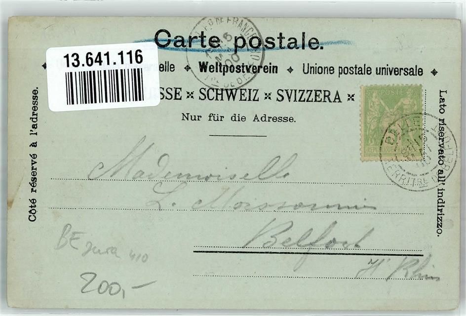 Boncourt, Lithographie Mondschein Villa Burrus Fa. Monnier Tabak Zigarren
