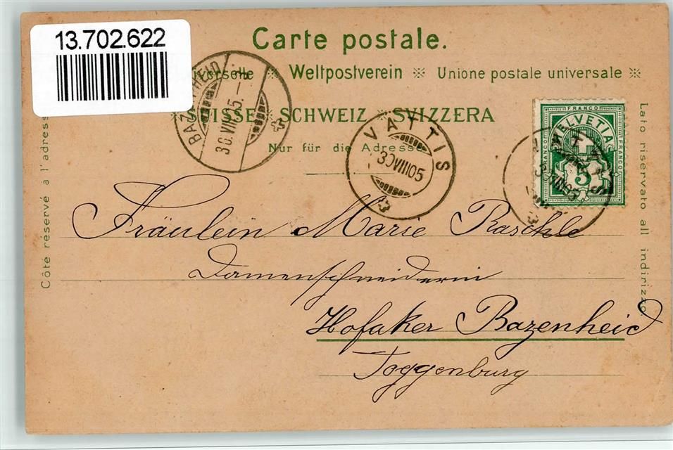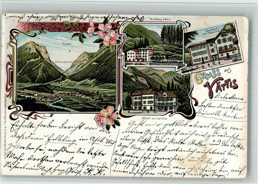 Vättis, Lithographie Kurhaus Gasthaus Zur Tamina Hotel Zur Lerche Gebrauchsspuren, bitte Scan genau beachten!
