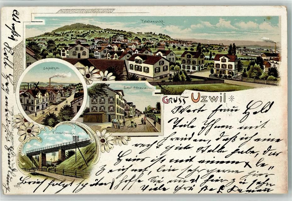 Uzwil, Schönthal Bahnhofstrasse Eisenbahnbrücke Lithographie
