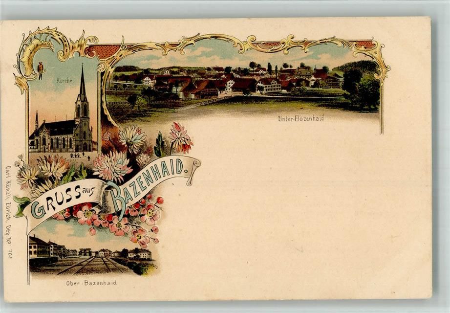 Bazenheid, Kirche Lithographie Verlag Künzli