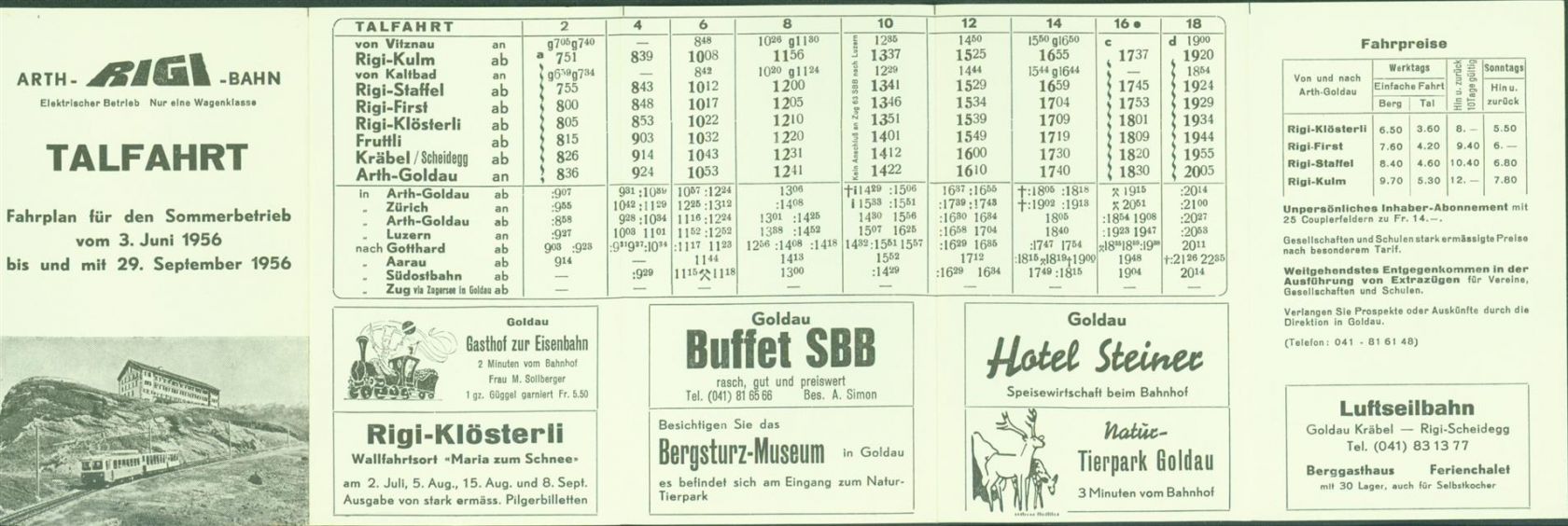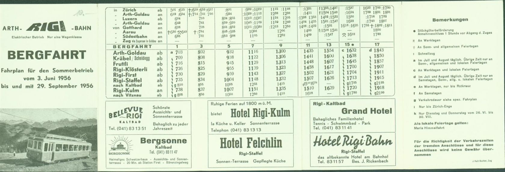 Rigibahn, Arth-Rigi-Bahn Bergbahn Fahrplan 1956